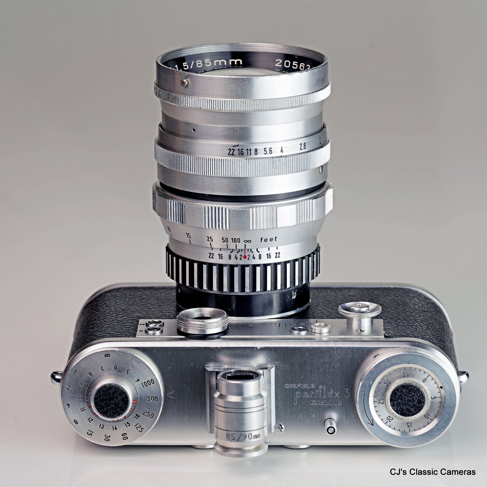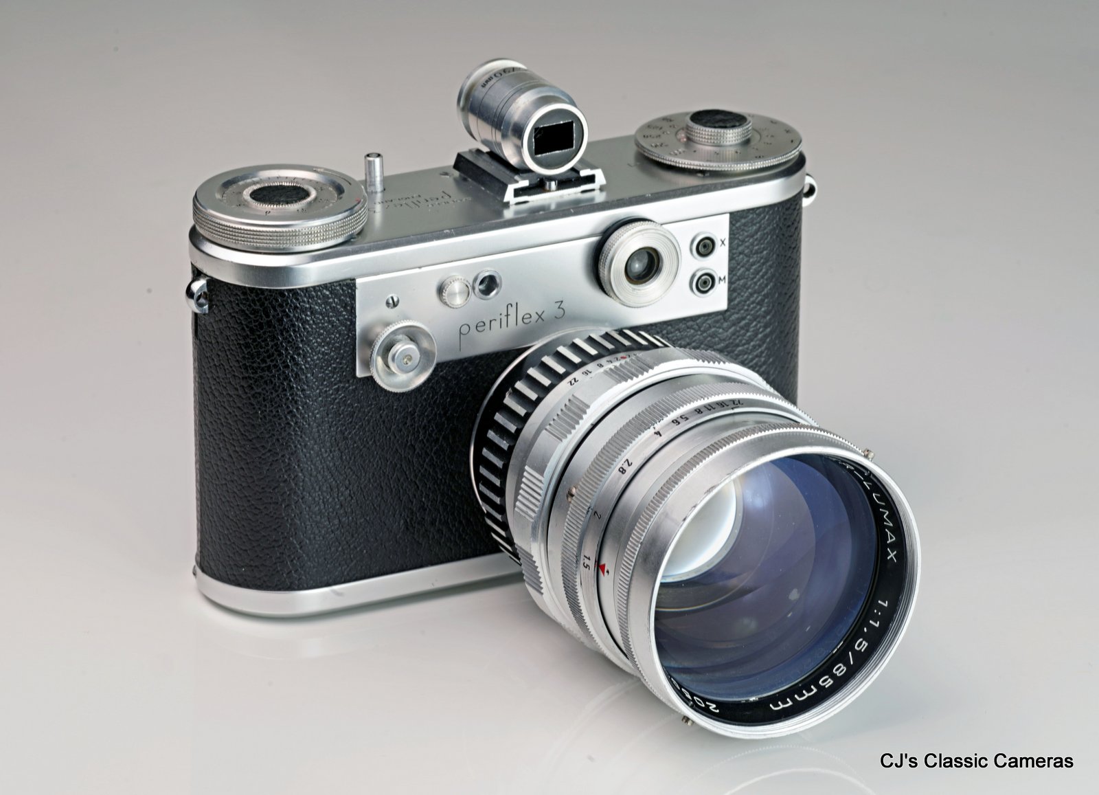 As the name indicated, the original Periflex camera had a unique design feature: a small periscope that could be lowered in-between the focal plane shutter and the lens, and was used to focus the image. Unlike a true SLR, however, the image still needed to be composed using an additional viewfinder. Corfield also produced a 50mm lens, the Lumar, in collaboration with the British Optical Lens Co. As lens and body were made of aluminium, the camera was surprisingly light for its size. The build quality was not quite up to the Leica standard but it was a very capable and successful camera indeed.
