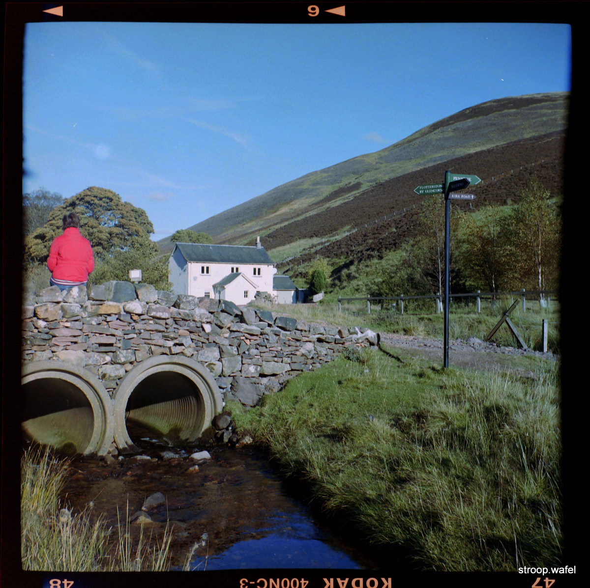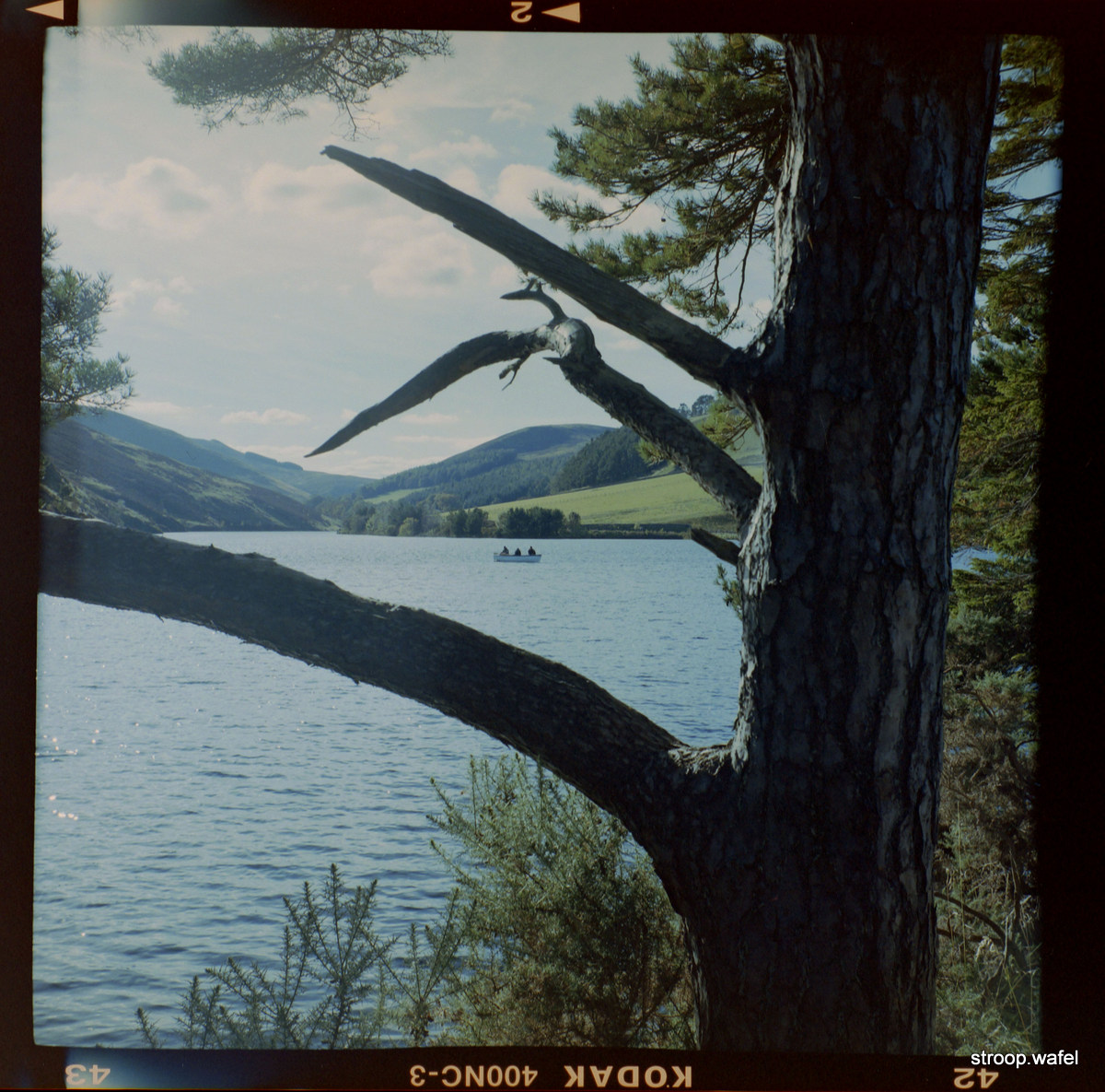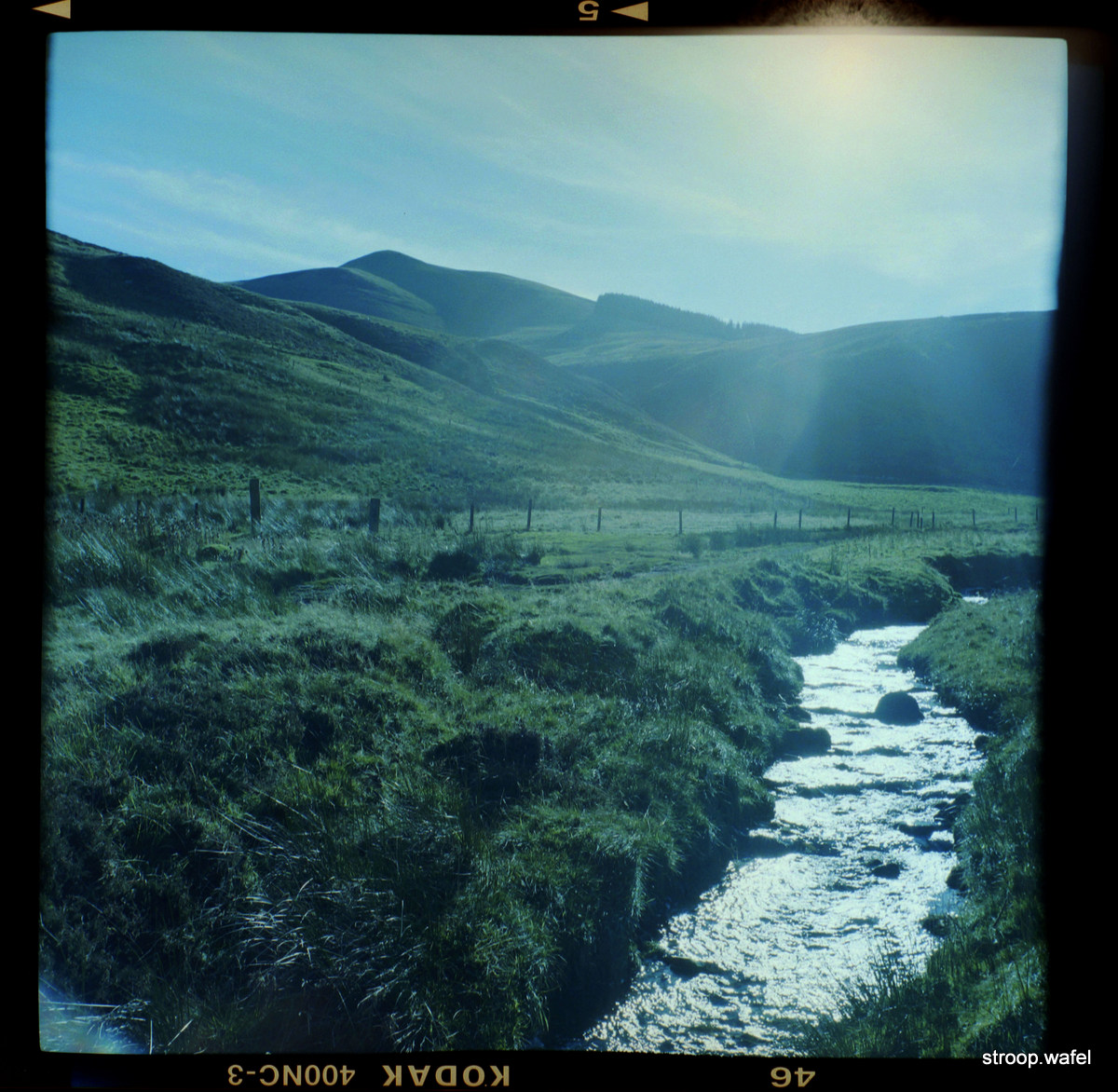 The film was Kodak Portra ISO 400 colour negative film. The photos were taken around the Glencorse and Loganlee reservoirs, the Pentlands. It looks like I photographed the negatives on a light table while still in the sleeve, need to do these again some day!