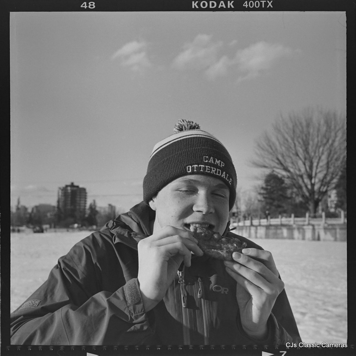 Nevertheless, the Solinar lens lives up to its reputation. The first shot is super sharp. I took a photo of the negative filling the frame of my 24 MP Sony A7II and there is still more detail on the negative, which I could only recover by zooming in more and then stitching the shots. That's over 2600 dpi, amazing. It's the Rideau Canal in Ottawa in February by the way. The longest skating rink in the world!