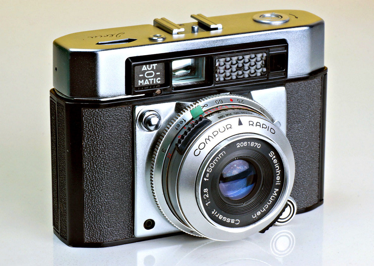 The Iloca Aut-o-matic is most commonly found with a Steinheil Cassarit f/2.8 lens but it was also available with Rodenstock Ysarex f/2.8 or Heligon f/2 lens. It was also sold under the Photrix name.