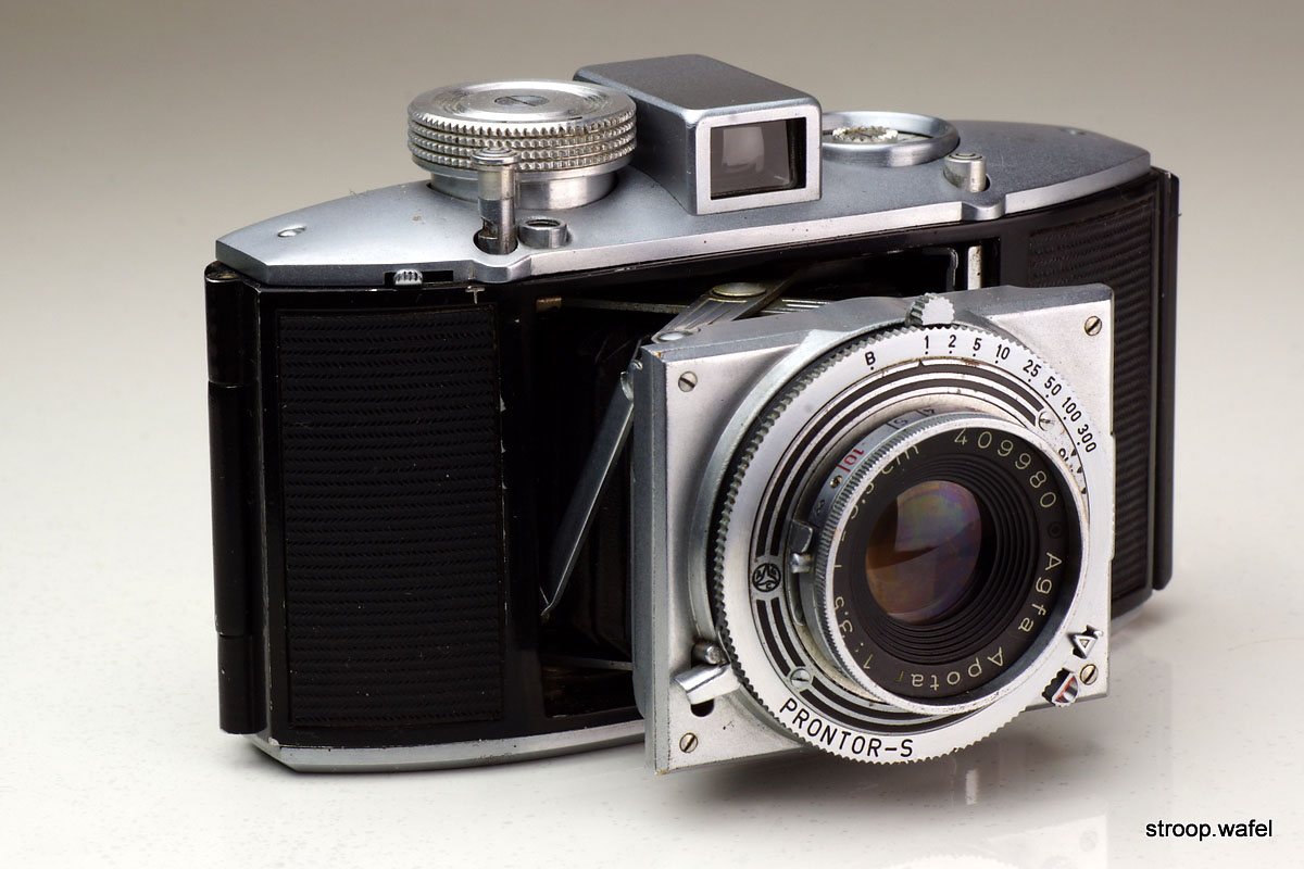 The post-war Karat 3.5 was quite similar to the second, pre-war version but featured a different lens and shutter. The lens was an Apotar, a three-element lens as opposed to the four-element Solinar. The shutter was a Prontor marked as Agfa Karat, the shutter plate also had shutter speed and aperture markings. Early production still had uncoated lenses, but soon all lenses were coated. A version with a standard Prontor-S lens as found on many other contemporary cameras was also produced. Based on the high lens serial numbers these were probably the last of Karat 3.5 to be built.