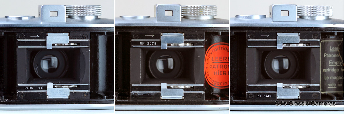 For unknown reason Agfa made changes to the position of the camera serial# inside the film chamber. Initially (starting with the Karat 6.3 Art Deco) this number was upside down next to the lower sprocket wheel. Then for a short while (about 12,000 Karats in total, about a third of those Karat 4.5, the rest Karat 3.5 v2) it was printed the right way up next to the upper sprocket wheel. Then for the last 4,000 or so of Karat 3.5 v2 production the serial was printed at the bottom of the film chamber. This configuration continued with the later post-war models.