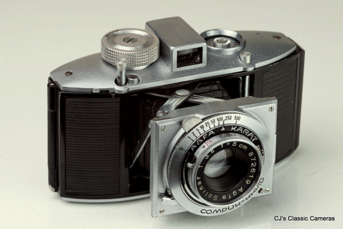 This was the first Agfa Karat, a small viewfinder camera with a distinctive, rounded oval body. It was first introduced in 1936. Distinguishing