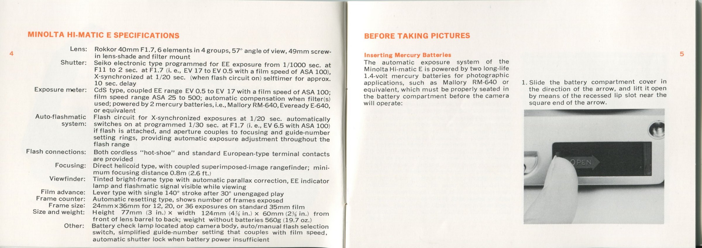 Minolta Hi-Matic E manual