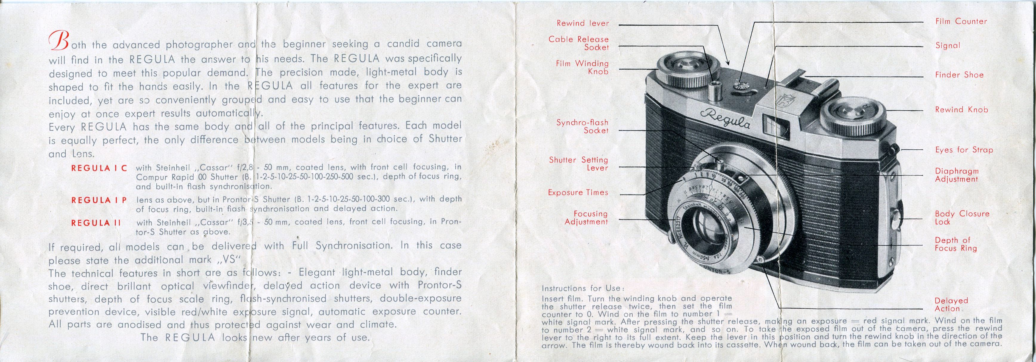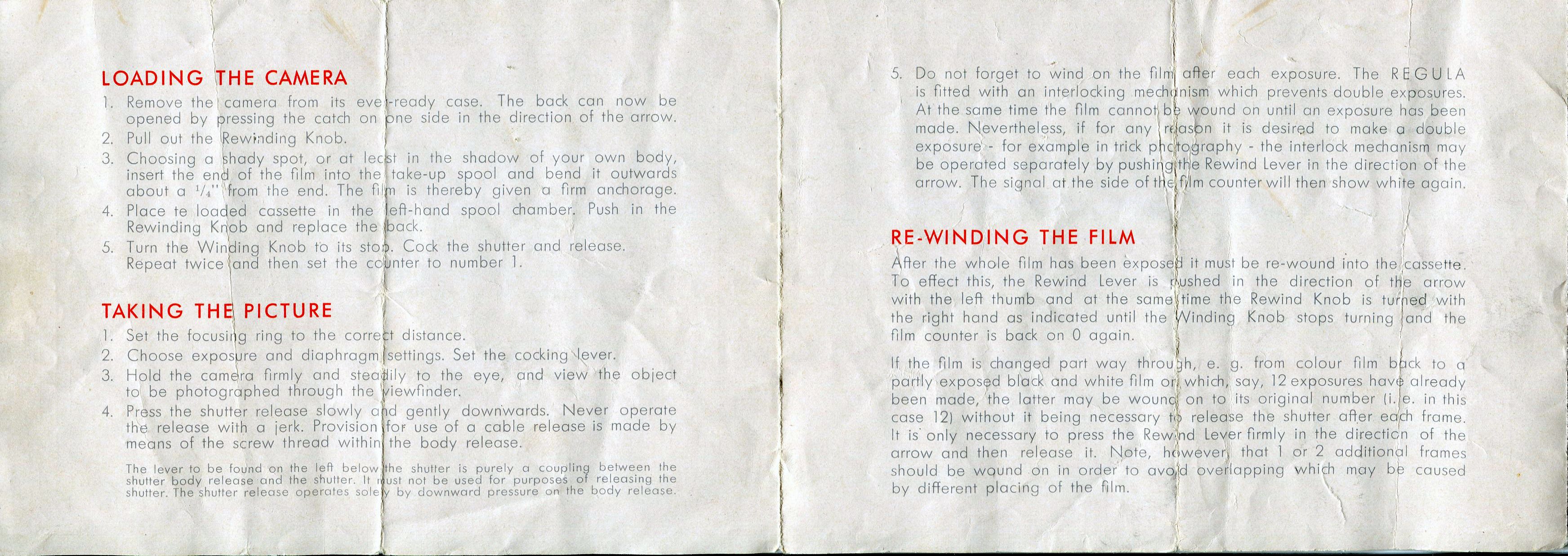 Three different manuals, one for I-P, II and I-C, a second one for the same cameras, and a final one very similar to the first one, but meant for the Regula I-Po.