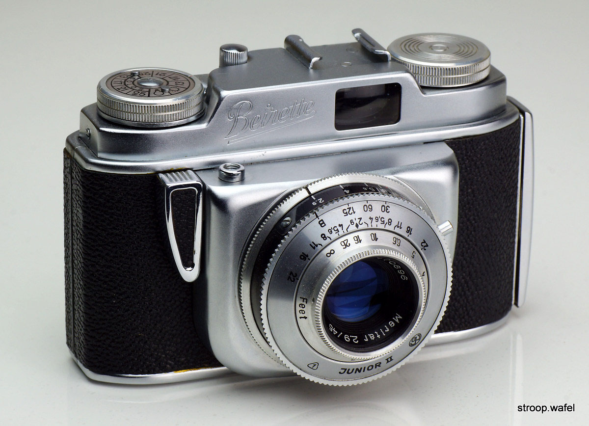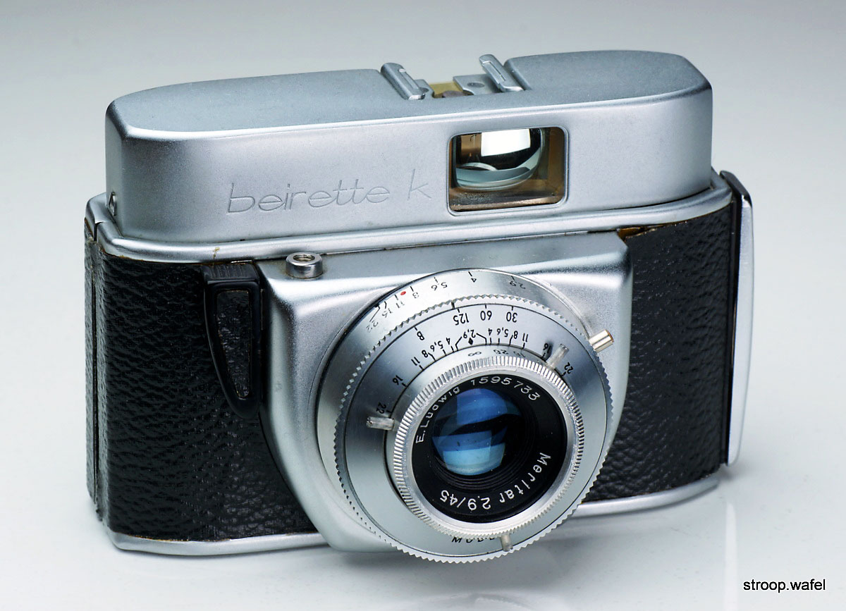 The camera did not use the ISO setting capabilities of the Rapid cassette system (see Minolta 24 Rapid), as it had a fully manual exposure system, in contrast to the Beirette v above. The lens was the familiar Ludwig Meritar or a Meyer-Optik Domiplan.