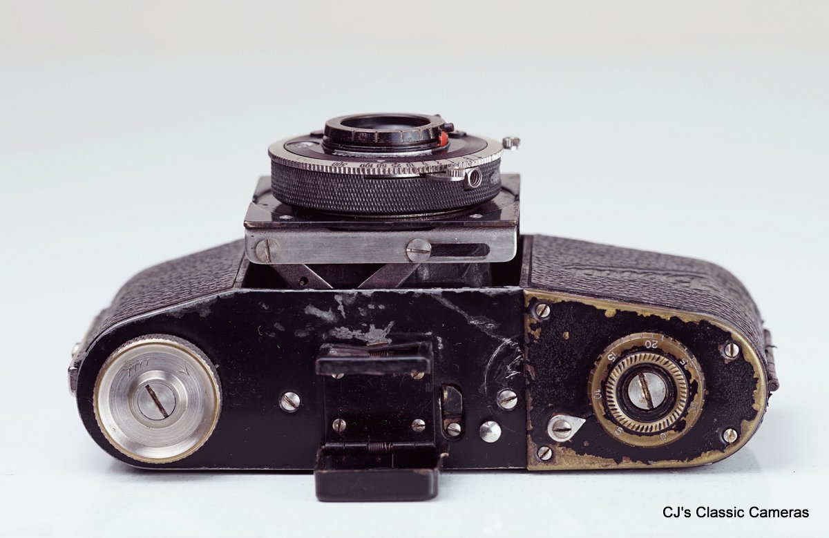 Interestingly, the camera had a roller instead of a sprocket wheel. Therefore, it could use unperforated film which allowed a larger frame size than the standard 36x24mm of 135 film, and indeed the Beira had a 40x31mm film frame. The most interesting variant of the Beira was the one with a prismatic telescope rangefinder called the 'Okula' build on. It was introduced a few years after the original Beira and could be used with regular 35mm film cartridges, although it still needed a dedicated uptake cassette.