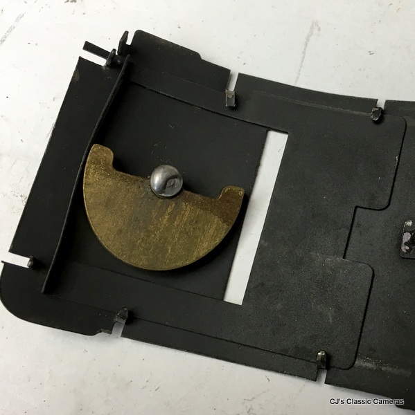 The Purma Special was introduced around 1937 and designed by Purvis and Mayo (hence the name Purma). It was a rather stylish but unusual looking camera made from bakelite which took 127 rollfilm. The Purma had a collapsible fixed focus lens as well as a fixed aperture, so exposure was purely controlled by its shutter. And herein lies the Purma's uniqueness: although the shutter was a simple spring-wound moving slit (i.e., a focal plane shutter), the way the speeds were controlled was unique. In essence, by holding the camera vertical or horizontal you would change the shutter speed, but in addition the way you held it vertical (rotating it 180 degrees) would change the speed. This system was controlled by an asymmetrical metal wheel that served two purposes: it changed the width of the slit and when held vertical, it would either counter or enhance the spring action, thus reducing or increasing the shutter speed. This resulted in a three-speed shutter with speeds of ca. 1/25, 1/150 and 1/450. For a camera of this specification that was a very fast top speed, so it is no surprise that the camera was advertised as 'the world's fastest candid camera (at its price)'.