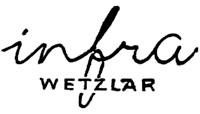 B.J. Oehler Feingerätebau started building cameras in Wetzlar (of Leica fame) in 1950. The Infra was the only camera it ever built. The Infra was a simple camera which used Karat cassettes instead of 135 film rolls and produced 24x24 mm square negatives. It featured an extinction meter in which one could see the numbers 1 to 8 depending on the available light. The numbers differ by one stop each. A table that list matching apertures and shutter speeds exists, but it does not mention the film speed. Taking the sunny 16 rule as a base, the value of 1/50s at f/16 for the lowest number, 1, indicates a film speed of ISO 50 or less. A copy of the table can be found at the bottom of this page.