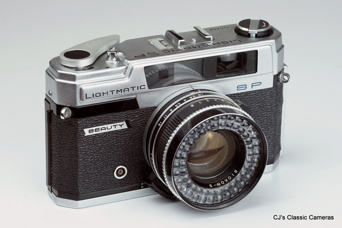 Beauty is a long gone Japanese camera brand, one of many to suffer under an increasingly competitive market, despite building a good reputation. During its short existence it did make an interesting range of cameras that included 16 mm cameras, medium format TLRs and an SLR (akin the Reflex Korelle) as well as a line of increasingly well-specifed 35mm cameras. The early 1960s Lightmatic SP was one of the latter, if not the last. It was an attractive-looking rangefinder with a fast Biokor f/1.9 lens with integrated lightmeter, and one of several very similar models produced by Beauty. There is an (almost?) identical model called the Lightomatic III and several models with the lightmeter mounted on the camera body, such as the Beauty LM, the Super L, and confusingly, a Lightomatic. No doubt there were more! I am not sure where the designation SP on this model referred to, if it was like the Olympus 35 SP it would have a spot metering mode but I don't think it has.