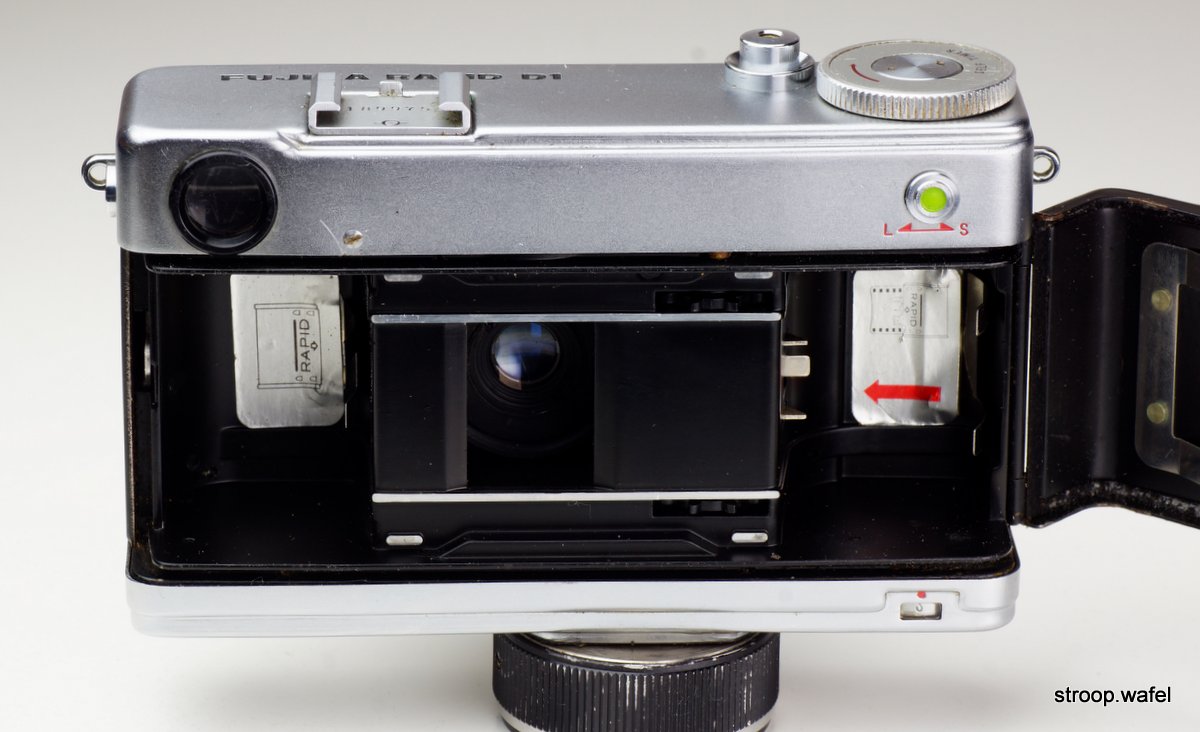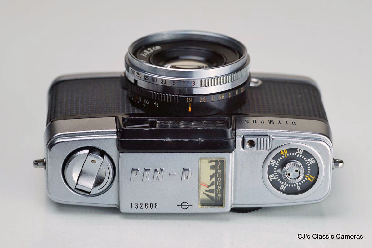 An Olympus Pen-D with F. Zuiko Auto-S 32mm f/1.9 lens and Olympus-build shutter with a speed range of 1/8 to 1/500 s.
