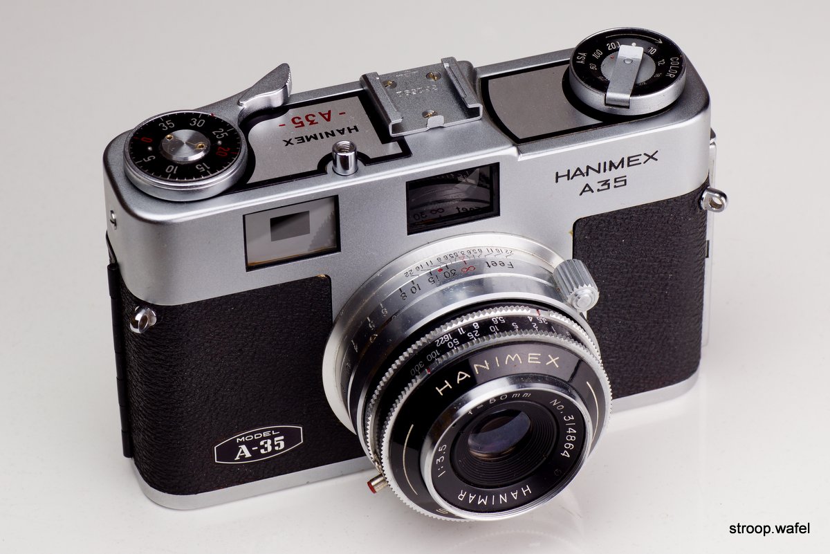 Rebranded Hanimex A35 version of the Samoca M-35. The top housing inlays were white with a black border instead of plain black as on the Samoca version.