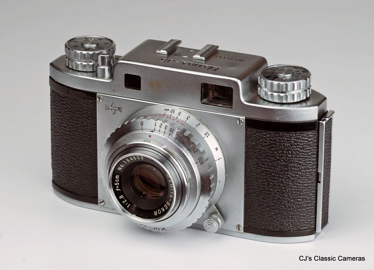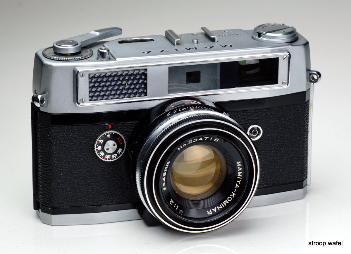Mamiya is one of the better-regarded Japanese camera makers and still exists today. Although primarily known for its medium-format cameras, it has also produced a wide range of rangefinder cameras, starting with the Mamiya 35 series in the late 40s, early 50s. This model was very similar to other first models of several Japanese camera makers, such as the Konica I, the Olumpus 35 and the Topcon 35. They were generally well made, small but heavy 35mm cameras with high-quality lenses in helical focus mounts and with excellent shutter, wind knobs (not levers) with integrated frame counters and simple rangefinder without framelines, but rapidly evolved to more fancy models of which many examples can be seen on this page.