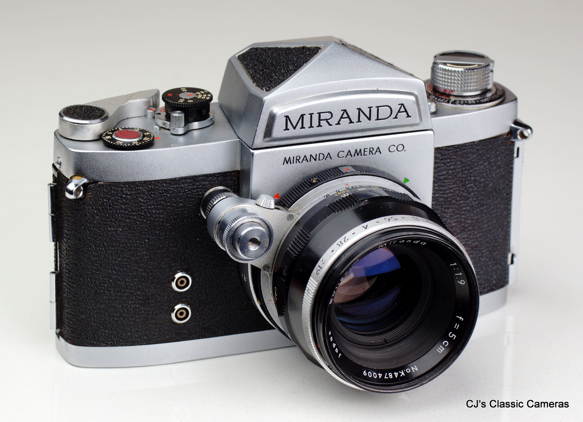 Miranda is not a name many people recognise as a camera maker nowadays, but from the mid 50s up to the 70s it was a well-known brand mostly for its SLR cameras. The first Miranda SLR was introduced in 1955 and was one of the earliest companies to do so. Initially the Mirandas developed quickly, new models came out each year and by 1961 the cameras had wind lever, lenses that stopped down automatically when releasing the shutter, interchangeable viewfinders and instant return mirrors. These were the features of the Miranda DR, the last model before models with lightmeter were introduced (initially as uncoupled prism meters). Unlike most other manufacturers, Miranda did not make their own lenses, but used other companies, in particular Soligor. The company stopped trading in the late 1970s but left a legacy of high-quality, innovative and user-friendly SLRs.