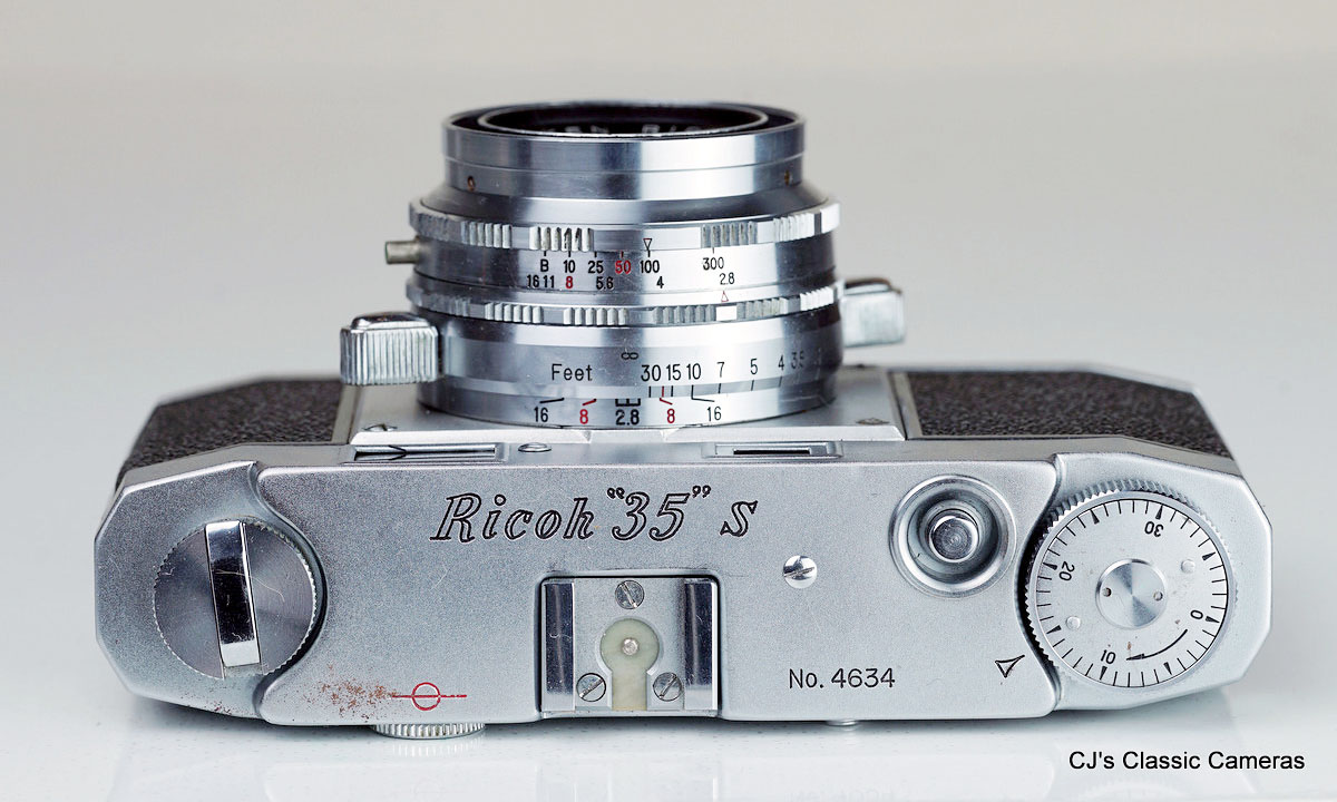 Around 1956 a coupled rangefinder version of the Samoca-35 with an optional light meter was introduced, called the Super Rangefinder. Above the lens it had a small wheel which rotated whilst focusing, which indicated the focus distance but also moved the rangefinder mirror inside the viewfinder. A new addition was the switch between electronic and bulb flash. The rangefinder version managed to squeeze a lightmeter cell next to the rangefinder window and an exposure dial on the already crowded top plate. Certainly a lot of functionality in a small package!