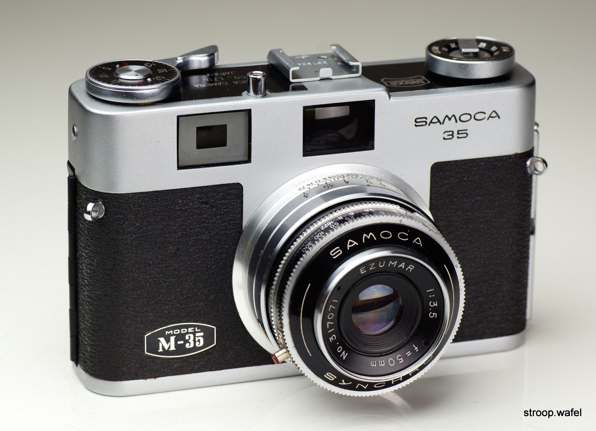 The quite stylish-looking Samoca M-35 with Ezumar 50mm f/3.5 lens in a Synchro shutter presumably made by Samoca itself.