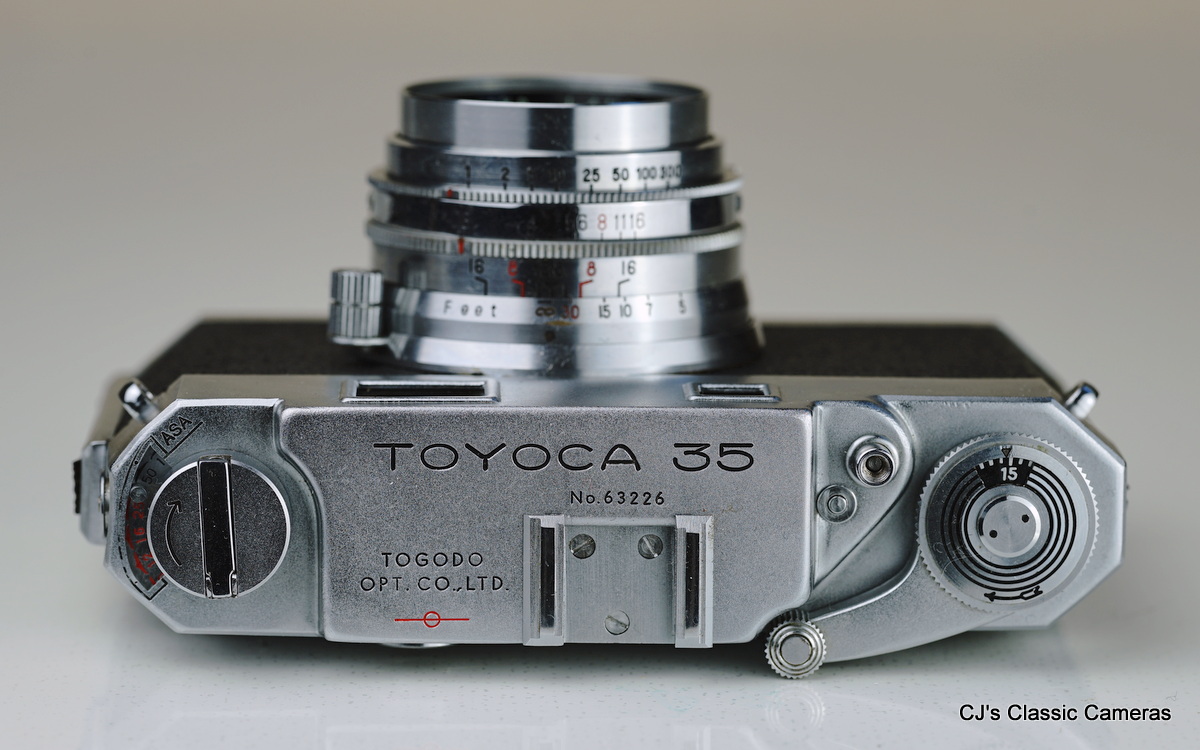 This is about the Togodo Toyoca 35, not to be confused with the Tougodo Toyoca 35, which was a completely different camera (a horizontal 35mm TLR!), or the Tougodo Toyaca 35-S, a 35mm viewfinder camera. It appears in fact that the Toyoca 35 was the only camera made by the Togodo Optical Company Ltd, a manufacturer about which I have not been able to find any information. I have found reference to a Toyoca Six by the same company, but all it said is that it was not available in the U.S. There is an image of a 6x6 Toyoca on the internet, claiming to be a Toyoca Six by Togodo, but it is clearly made by Tougodo instead.