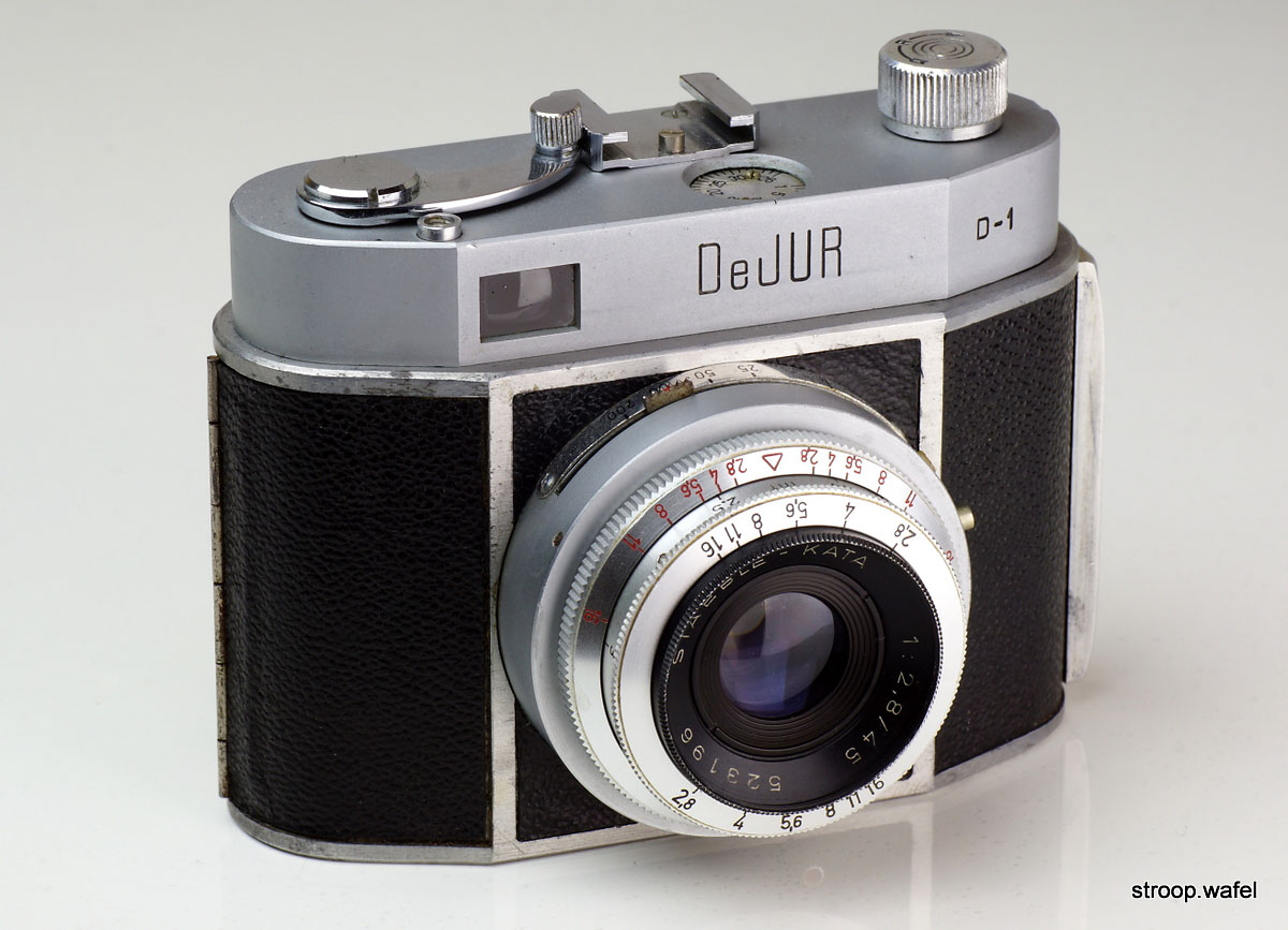 A DeJUR D-1 with interchangeable Staeble-Kata 45mm f/2.8 lens.