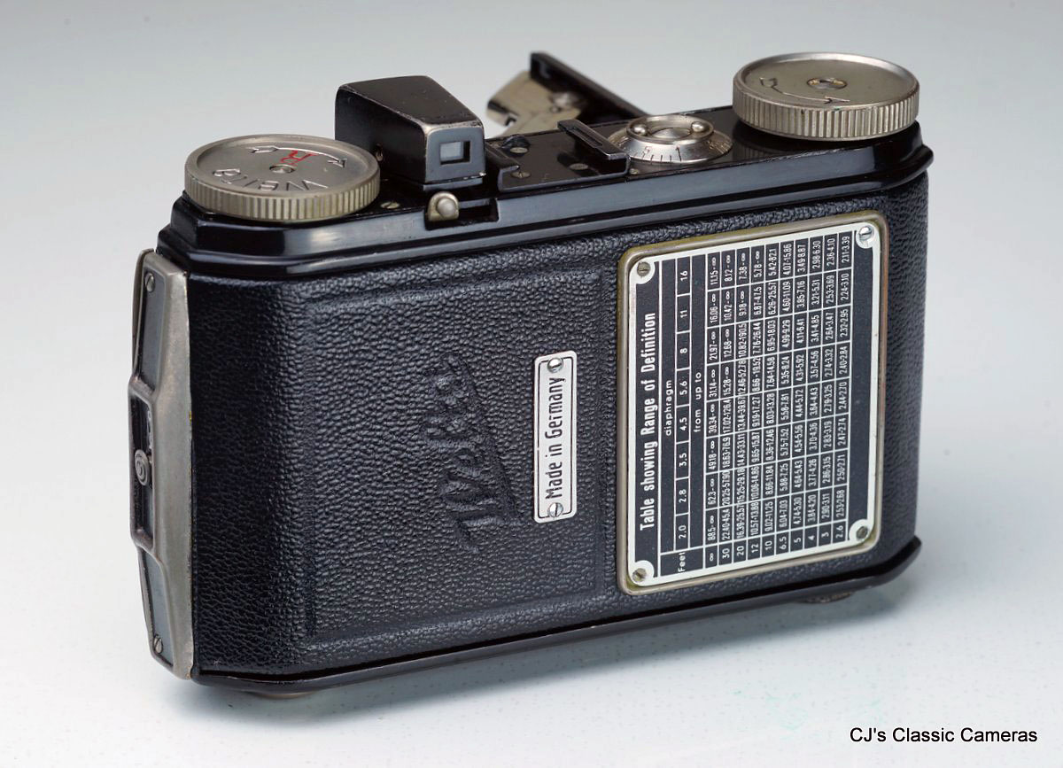 Top and rear views of the Welta Watson, showing the depth of field table mounted on the back. The very earliest Weltas did not have this yet.