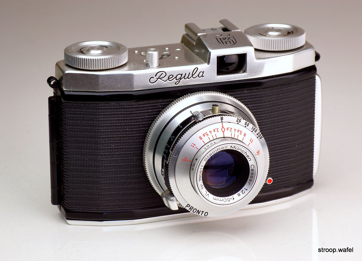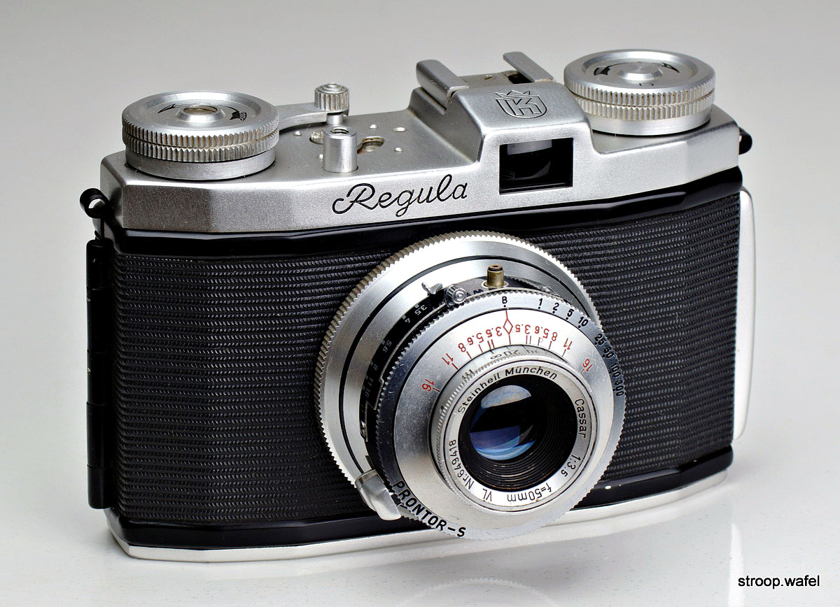 King Regula IC with Steinheil Cassar 50mm f/2.8 lens and Compur-Rapid shutter.