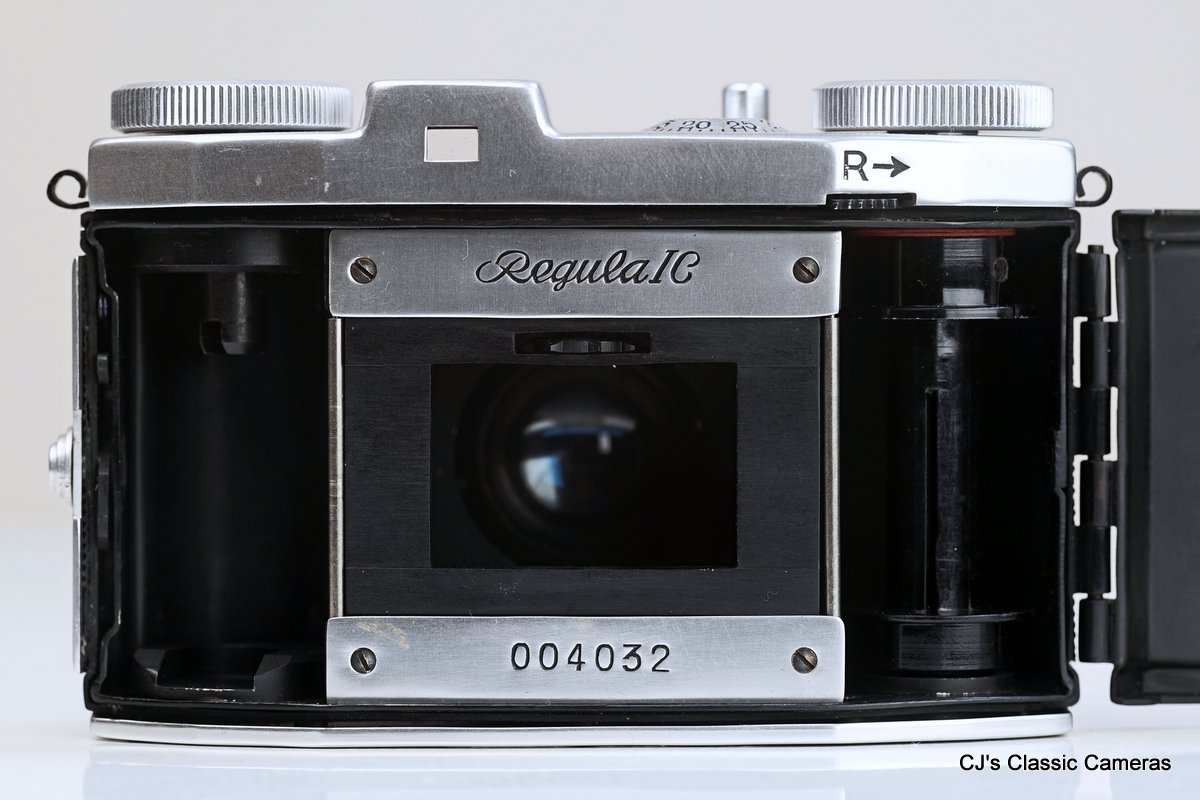 The King Regula I-C was a continuation of the Regula IC, just like the I-P was developed out of the IP. It was thus nearly identical to the I-P but had a Compur-Rapid or Synchro-Compur shutter. It can be found with wind knob or winder lever. Because of its high-quality shutter it was arguably the top model amongst the first generation King Regulas and identical to the King Regula I-A below. It was marketed together with the King Regula I-P and II, as indicated by the camera manual, which was the same for all three models (see here), as well as in sales brochures like this one (in German). Hence, the Regula I series was named after their shutters: I-P = Prontor-S(V), I-Po = Pronto, I-C = Compur-Rapid (or Synchro-Compur).
