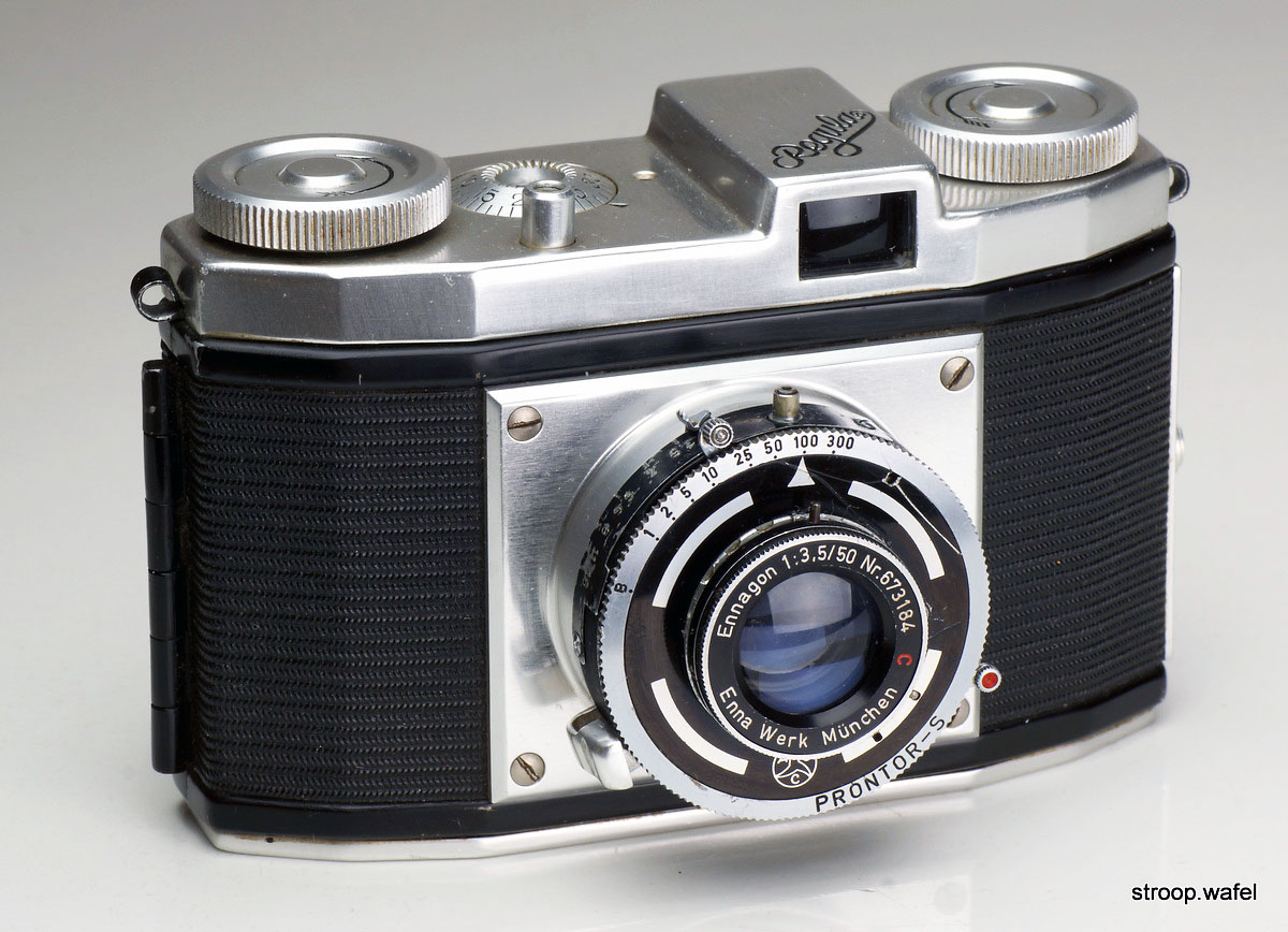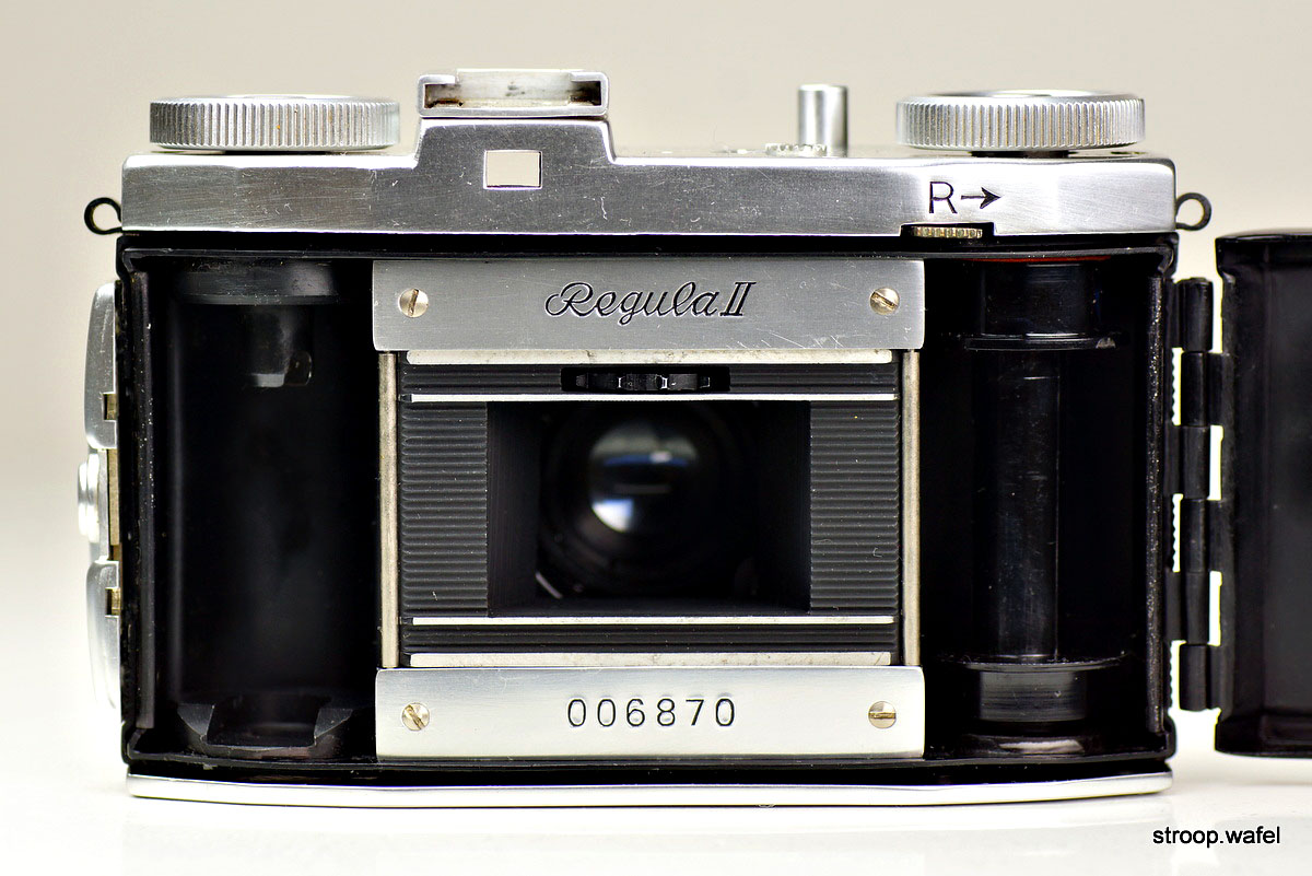 Also the King Regula II was introduced around the same time or a little later than the King Regula IP. There were several variants, similar to those of the King Regula IP, and I have in fact found very little difference between the King Regula IP and II models. Only the lens speed was different, all King Regula II had a fastest aperture of f/3.5 instead of the f/2.8 lenses on the King Regula IP. Available lenses were Enna Ennagon and Staeble Kataplast.
