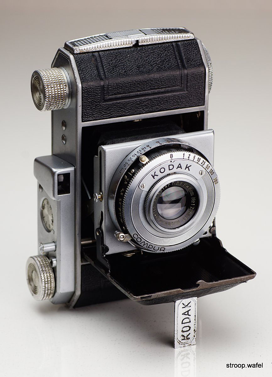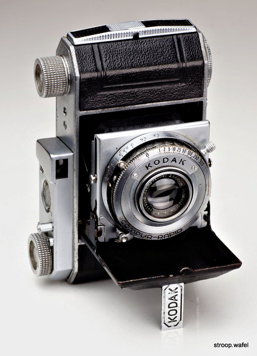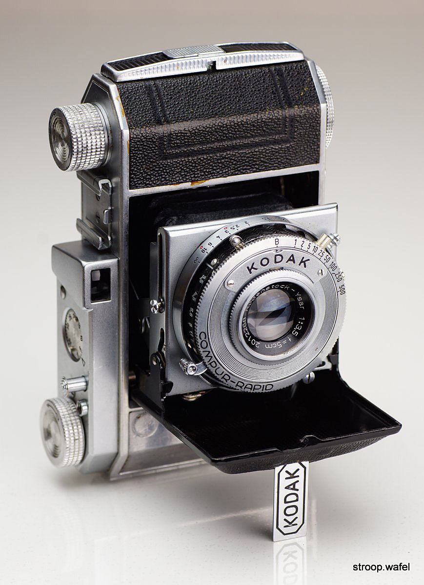 With this model Kodak introduced light meters on its Kodak Retina range. Two different were made, the first version featured the smaller viewfinder of the Kodak Retina Ib but with an enlarged top housing to accommodate the light meter, the second version introduced the larger bright frame viewfinder which had an extra window. This was the last viewfinder folding Kodak Retina and in my opinion, one of the nicest looking cameras Kodak produced.
