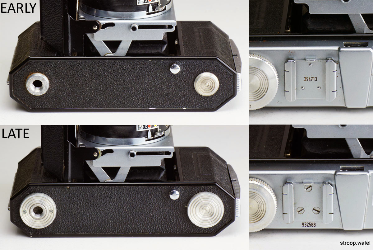 Often when I get a second camera of a certain model, they end up being different due to small changes during production. It was no different here, when I got an Retinette 017 dating from about six months earlier than the one pictured above. The location of the body serial nr. was, rather unusually, stamped on the accessory shoe itself. The bottom plate had smaller 'feet'.